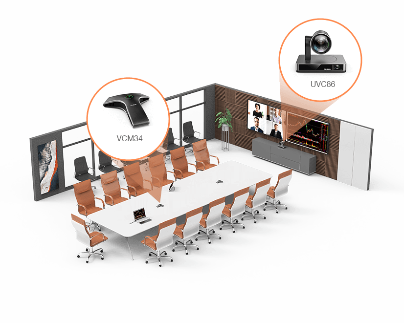 -Yealink S90 multi-camera solution features multiple HD PTZ cameras(UVC86) that intelligently track speakers and seamlessly switch views, eliminating the awkward mechanical movements of a single camera.