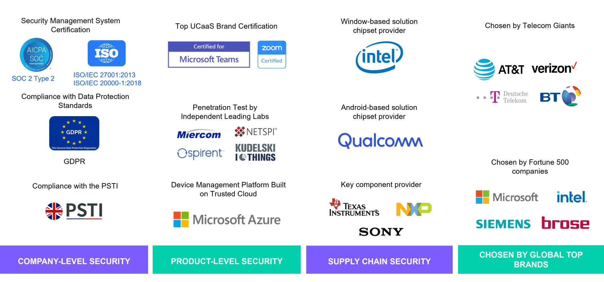 ● Superior Audio: Multi-microphone arrays AI-enhanced noise cancellation, echo cancellation, audio fence, and full-duplex sound quality preserve natural conversation dynamics.
